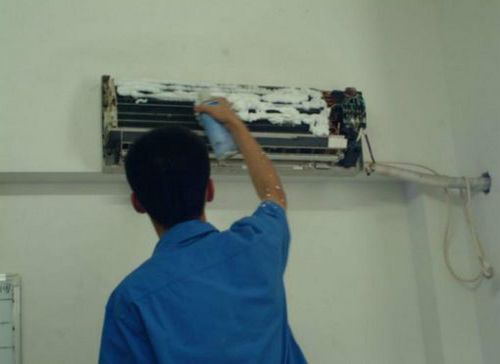 | 榆树空调维修师傅给榆树用户上门维修清洗空调。 |
